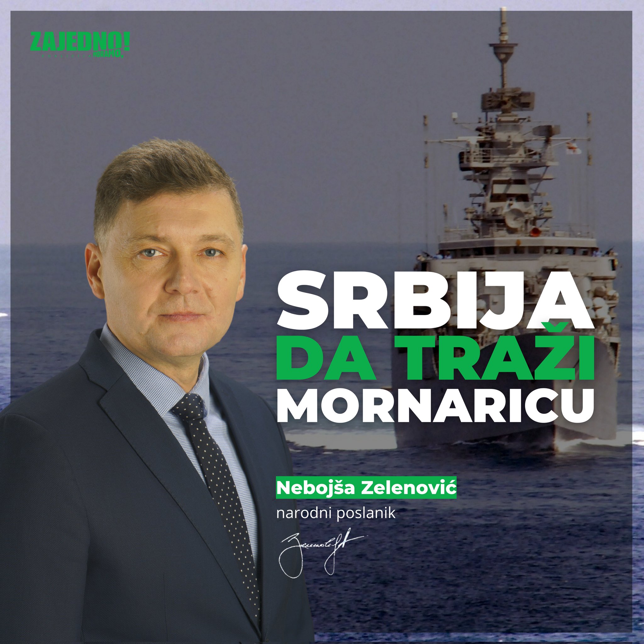 “Imajući u vidu značaj pitanja migracija za Europu, nerazumno je da najveća zemlja u regionu nema ratnu mornaricu koja bi doprinela stabilnosti Sredozemnog mora” – stoji u uvodu naslova “Srbija da traži mornaricu” nekadašnjeg gradonačelnika Šapca, sada narodnog poslanika stranke “Zajedno”, Nebojše Zelenovića. Slučajno ili ne, spomenuta izjava dolazi nakon neprestanog svojatanja Dubrovnika i drugih hrvatskih gradova, zatim hrvatskih povijesnih ličnosti i jezika od strane Srbije gdje političar stranke koja u Srbiji predstavlja pandan hrvatske stranke “Možemo!” sanjari ništa drugo nego ratnu mornaricu u zemlji bez mora.