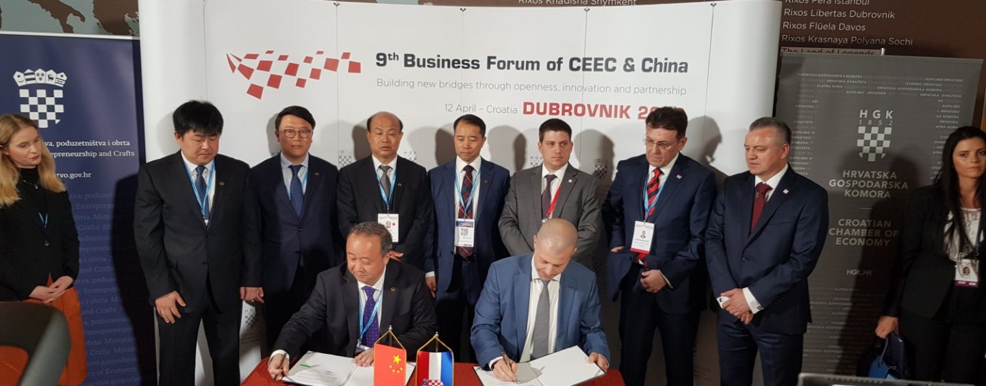 U sklopu sastanka na vrhu Kina +16 u Dubrovniku u petak, 12. travnja 2019. HŽ Infrastruktura d.o.o., potpisala je dva memoranduma o suradnji s vodećim kineskim tvrtkama. S tvrtkom China Road and Bridge Corporation (CRBC) potpisan je Memorandum o razumijevanju o suradnji na projektu nizinske pruge na dionici Rijeka – Zagreb, a s tvrtkom China Railway Eryuan Engineering Group Co., Ltd (CREEC) Memorandum o razumijevanju o zajedničkoj uspostavi intermodalnog prometnog koridora u Hrvatskoj s posebnim naglaskom na Mediteranski koridor.