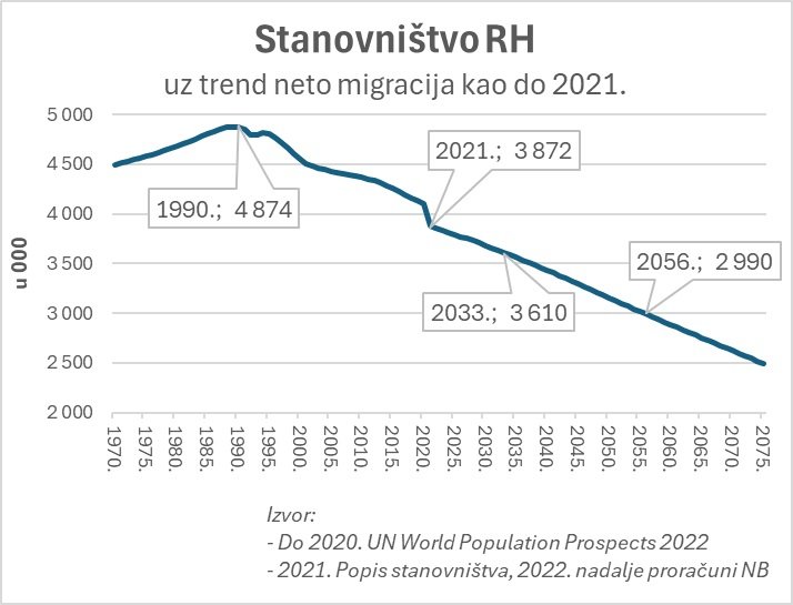 1. Ovo su osnovne projekcije. Kao što vidimo, za 10 godina ćemo pasti na oko 3,6 milijuna stanovnika. Za samo 22 godine smo na ispod 3 mil. stanovnika!