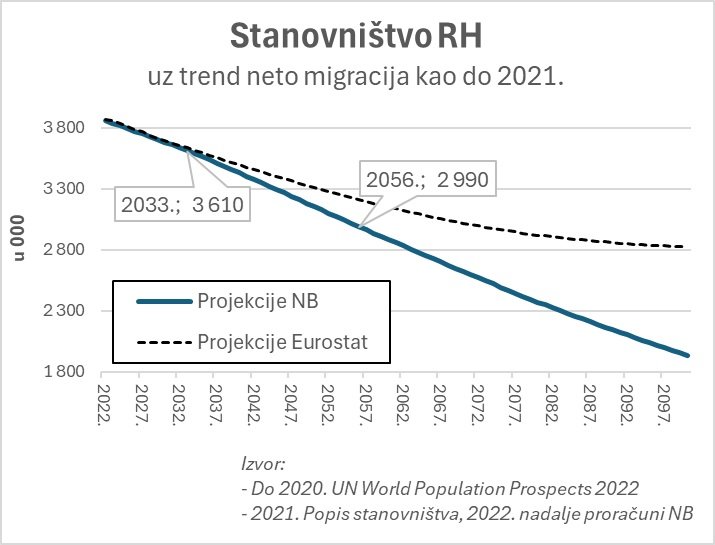 1. Usporedba s trenutnim projekcijama Eurostata: