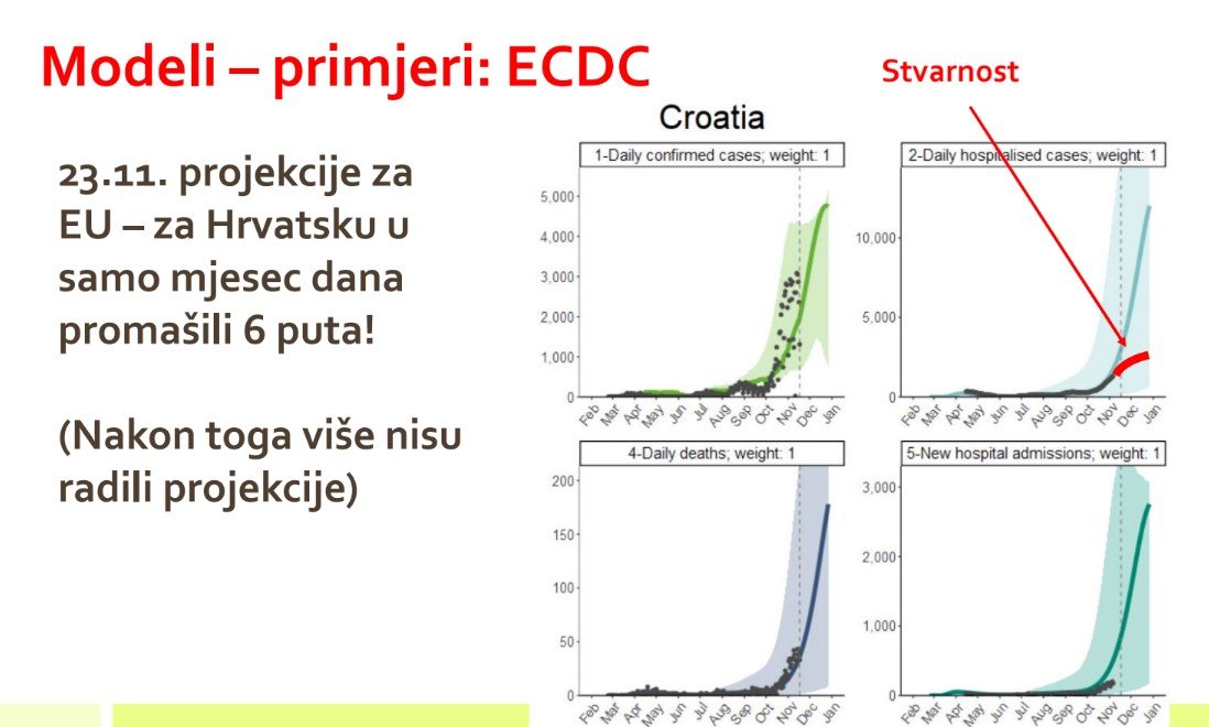 Eurostat je sigurno u krivu. Ne mora vas impresionirati što to radi institucija. Pogledajte samo ove projekcije EDC za epidemijski val krajem 2020. U samo 30 dana projekcija su promašili 6 puta.