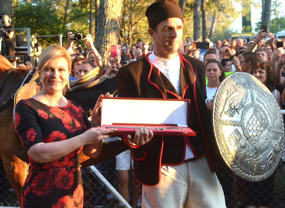 U prigodnom obraćanju KGK je napomenula kako Hrvatska ima svoje tradicije kroz koje govori naš identitet, vrijednosti koje dijelimo, ono što nas je očuvalo kao narod te nas uči kako se ponašati danas, istaknuvši pritom kako je „Trka na prstenac“ tradicija u kojoj se ogleda viteštvo i ponos hrvatskoga čovjeka Istre. „U njemu se ogleda i mirnoća i snaga, i disciplina i odlučnost, u njemu se ogleda – Istra!“, navela je Predsjednica RH.