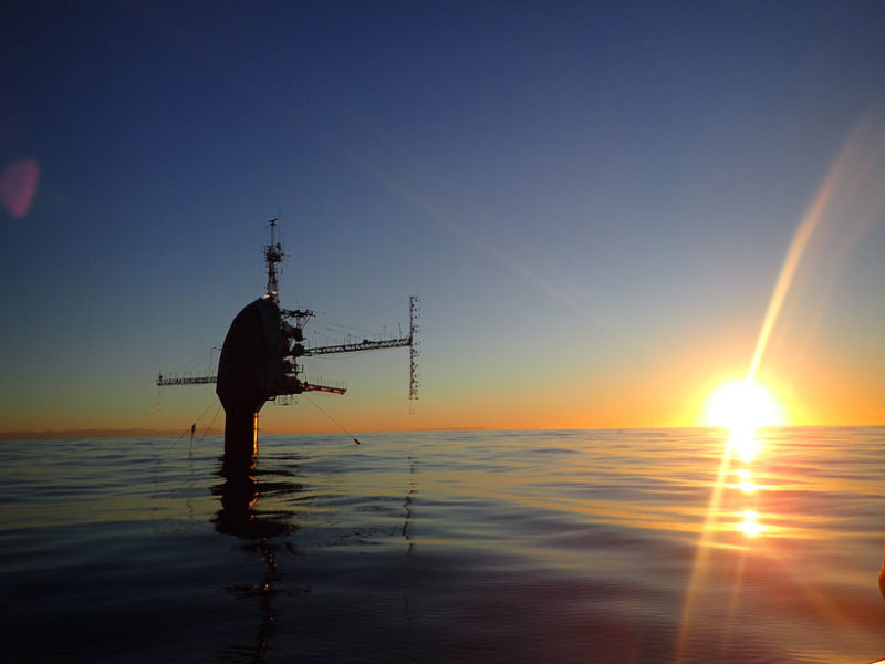 In October 2017, with a freshly minted Ph.D. in applied marine physics, I spent about 35 days aboard FLIP, and it definitely made a lasting impression on me as well. I was aboard as part of the science team for the U.S. Navy–funded Coupled Air-Sea Processes and Electromagnetic ducting Research (CASPER) program, which involved an interdisciplinary and international cohort of scientists from several academic universities and federal research laboratories. The scientific goal of CASPER was to better understand how the atmosphere and the ocean interact, as well as how this atmosphere-ocean coupling affects electromagnetic energy traveling in the marine environment. The CASPER science team had conducted a field campaign offshore North Carolina in 2015 and then commissioned FLIP for its West Coast campaign during fall 2017.