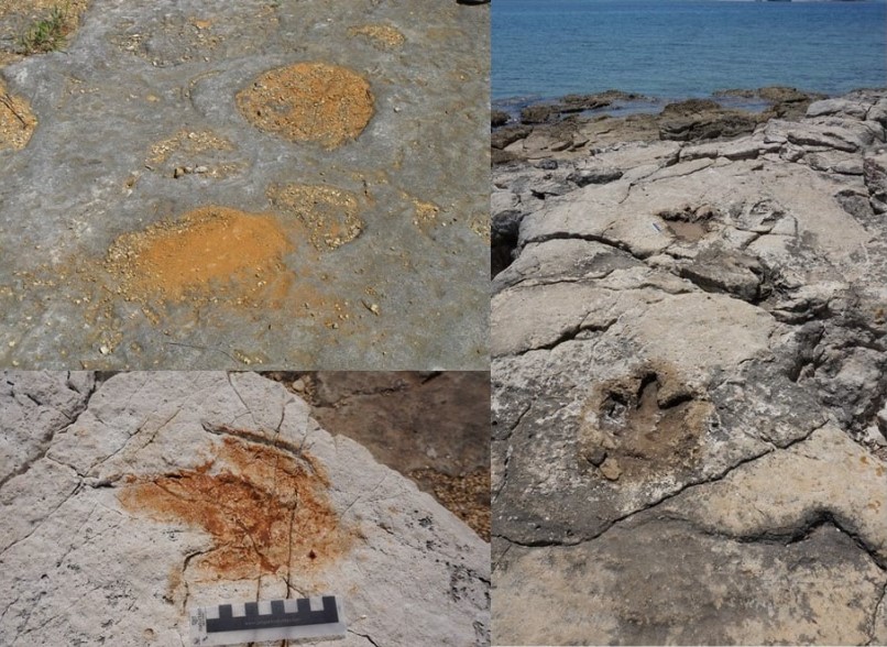 Istra, otok Hvar, Dugi otok i Biokovo dio su paleogeografske jedinice Jadransko-dinaridske karbonatne platforme. Tijekom mezozoika platforma se pružala približno sjeverozapad-jugoistok, a sa zapadne, istočne i sjeverne strane bila je okružena dubokim bazenima. Na karbonatnoj platformi more je bilo plitko i toplo i taložio se karbonatni mulj. U više navrata tijekom jure i krede na našoj je platformi dolazilo do okopnjavanja, odnosno postojali su takvi ekološki uvjeti koji su omogućili opstanak i razvoj dinosaurskih populacija. Populacije dinosaura koje su naseljavale ova područja specifične su po morfologiji i dimenzijama fosilnih otisaka stopala, te po kostima koje se razlikuju od istodobnih nalaza iz ostalih dijelova svijeta. Nalazi otisaka stopala upućuju na prisutnost sauropodnih, teropodnih i ornitopodnih dinosaura tijekom mlađe jure i krede, ali ni oni također ne omogućuju preciznije određivanje taksonomske pripadnosti.