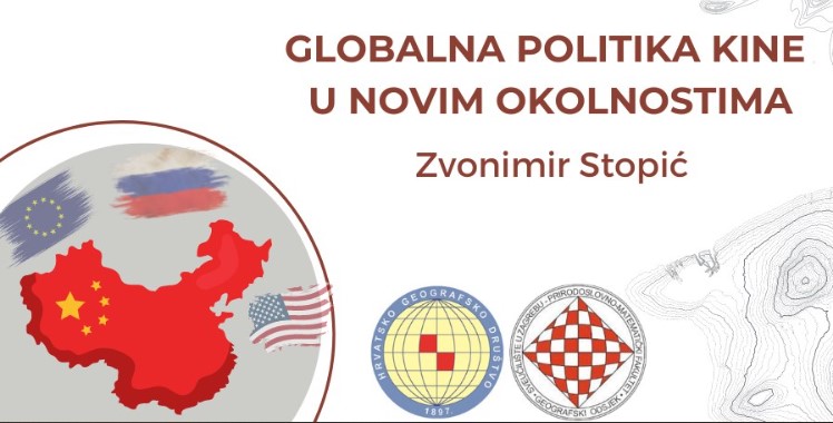 Prvo predavanje na zagrebačkom Geografskom odsjeku PMF-a u novom semestru na tribini Geografski ponedjeljak, 6. ožujka 2023. godine s početkom u 19 sati u predavaonici 2 na adresi Ilica 242 (HKS) – ulaz iz Domobranske, pod nazivom “Globalna politika Kine u novim okolnostima” održati će Zvonimir Stopić, profesor Sveučilšta Capital Normal iz Pekinga i suradnik Zagrebačke škole ekonomije i menadžmenta.