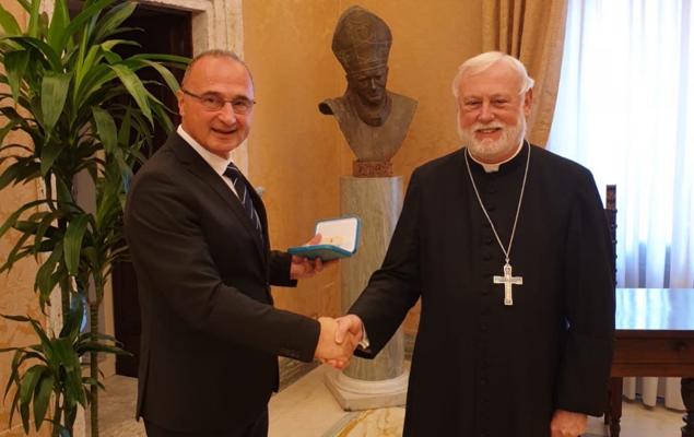 Drugog dana službenog posjeta, 13. studenoga 2019. godine, ministra je u audijenciju primio Sveti Otac Papa Franjo, a susreo se u pratnji hrvatskog veleposlanika u Vatikanu i s tajnikom za odnose s državama u Državnom tajništvu Svete Stolice, nadbiskupom Paulom Richardom Gallagherom. Na sastanku su istaknuti tradicionalno odlični odnosi Hrvatske i Svete Stolice, koji su utemeljeni na povijesnom partnerstvu i međusobnom razumijevanju. Ministar je upoznao tajnika Gallaghera s temama i aktivnostima koje Hrvatska planira poduzeti za vrijeme predsjedanja Vijećem Europske unije u prvoj polovini sljedeće godine.