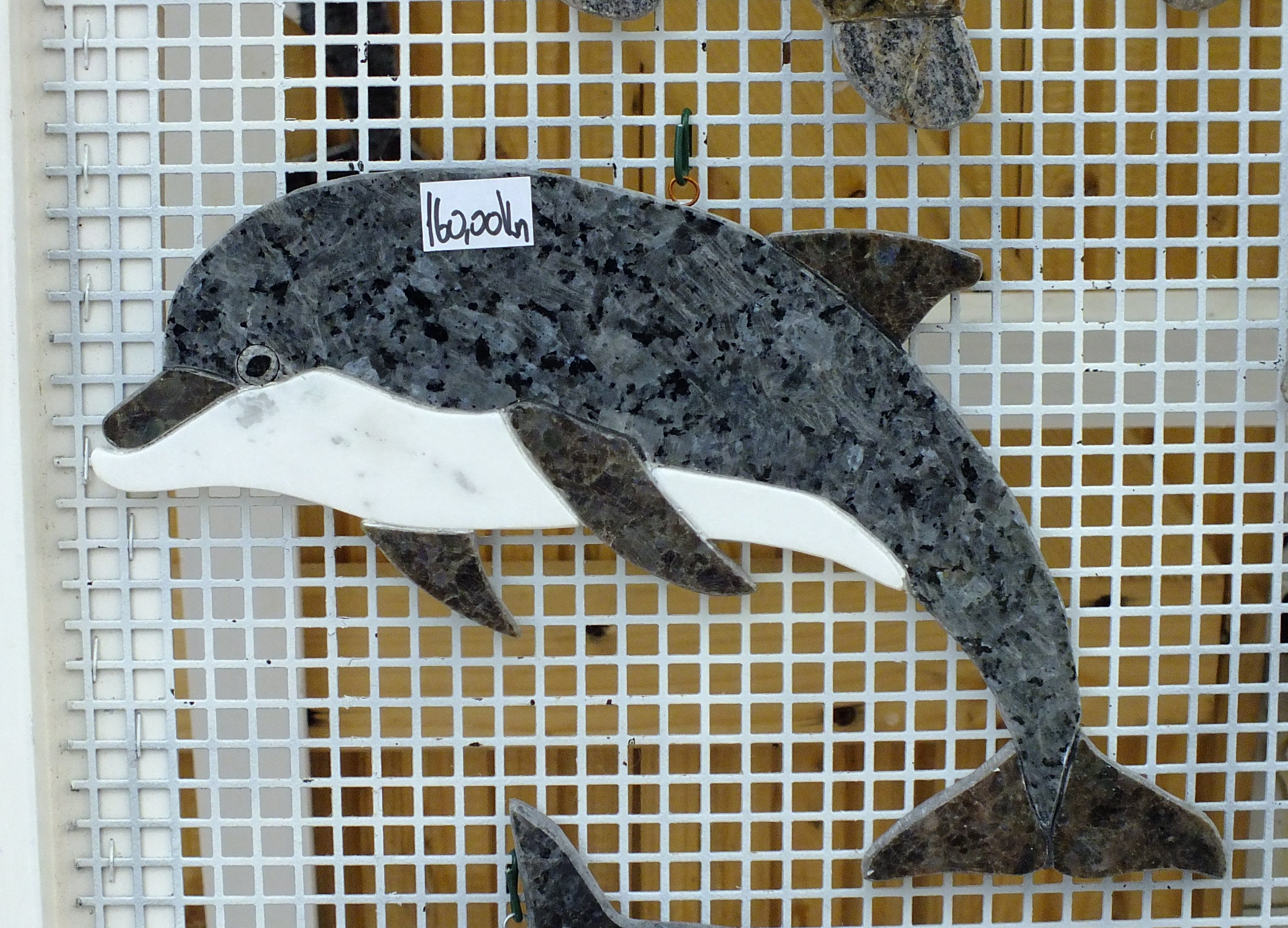 Geopark otok Rab, u osnivanju već duže vrijeme, također vapi za autohtonim suvenirom koji bi simbolizirao našu geološku baštinu. Bilo je tu raznih ideja, od izrade suvenira s motivima fosila s otoka Raba, pa do suvenira u koje bi bio ugrađen lokalni kamen. No, neovisno o timu Geoparka, ove su se ljeta na Rabu pojavili novi autohtoni suveniri izrađeni od kamena, dijelom uvoznog, ali znatnim dijelom i lokalnog, rapskog! Autori tih suvenira su bračni par Maračić iz Kampora na Rabu, a suveniri su vlastiti ručni rad. Njihovi motivi su ribe, morski konjići, dupini, ptice izrađene od kamena i to vrlo vjerno, najbolje što sam mogao vidjeti do sada, no prosudite sami na slikama s njihovog štanda u gradu Rabu.