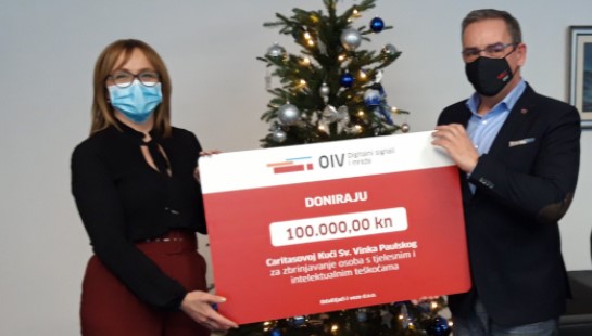 Direktor Odašiljača i veza HRT-a (OIV) u četvrtak, 17. prosinca 2020. uručio je u Zagrebu donacijski ček u vrijednosti 100 tisuća kuna ravnateljici Caritasa Sisačke biskupije. Naime, OIV redovno podržava one koji pružaju pomoć, te su ove su godine sredstva predviđena za božićne znakove pažnje odlučili donirati Kući Sv. Vinka Paulskog za pomoć osobama s tjelesnim i intelektualnim teškoćama te pridruženim smetnjama.