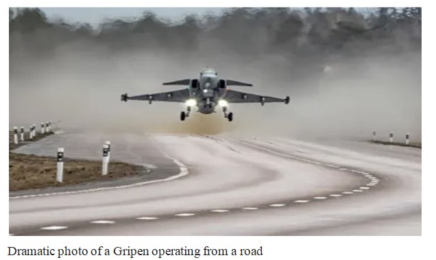 „Saab JAS 39 Gripen E je najpraktičniji lovac na svijetu. Proizvodi ga švedska tvrtka Saab. Model E najnovija je iteracija i u službi je švedskog ratnog zrakoplovstva i uskoro će ući u službu brazilskog ratnog zrakoplovstva. U skladu sa švedskom filozofijom dizajna, Gripen daje praktičan prioritet. Može djelovati iz prostora veličine 600 sa 16 metara. To uključuje ceste, rulne staze i piste oštećene u bitkama. Nadopunjavanje gorivom i ponovno naoružavanje traje manje od 10 minuta, a motor se može promijeniti u roku od jednog sata, od strane 1 obučenog inženjera i 5 vojnih mehaničara. Sva oprema potrebna za održavanje Gripena stane u standardni kontejner od 20 stopa. Što se tiče njegovih sposobnosti kada je u zraku, Gripen E može biti naoružan mnoštvom oružja uključujući bombe, krstareće rakete i projektile zrak-zrak kao što je smrtonosni projektil zrak-zrak srednjeg dometa MBDA Meteor. Može povući do 9 Gs u borbama i ima najveću brzinu od preko 2 Macha.”