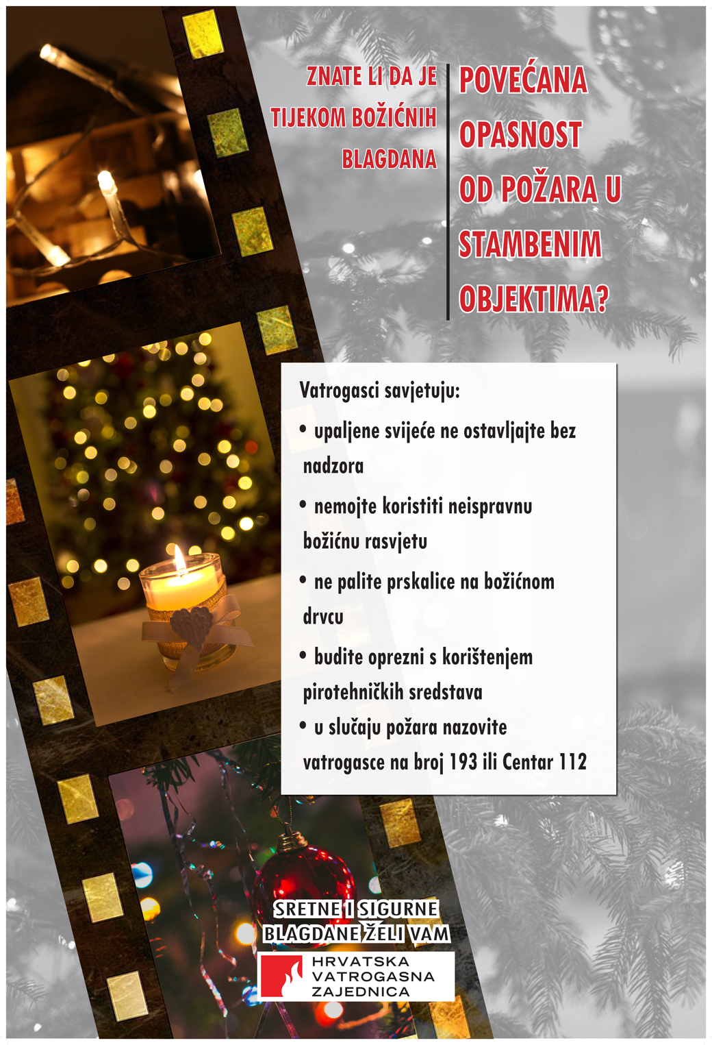 Vatrogasci savjetuju da se upaljene svijeće ne ostavljaju bez nadzora te da se ne koristi neispravna božićna rasvjeta. Pridržavanjem ovih savjeta zajednički možemo osigurati mirne blagdane za građane, ali i za vatrogasce. Ukoliko primjetite požar odmah nazovite vatrogasce na broj 193 ili Centar 112.