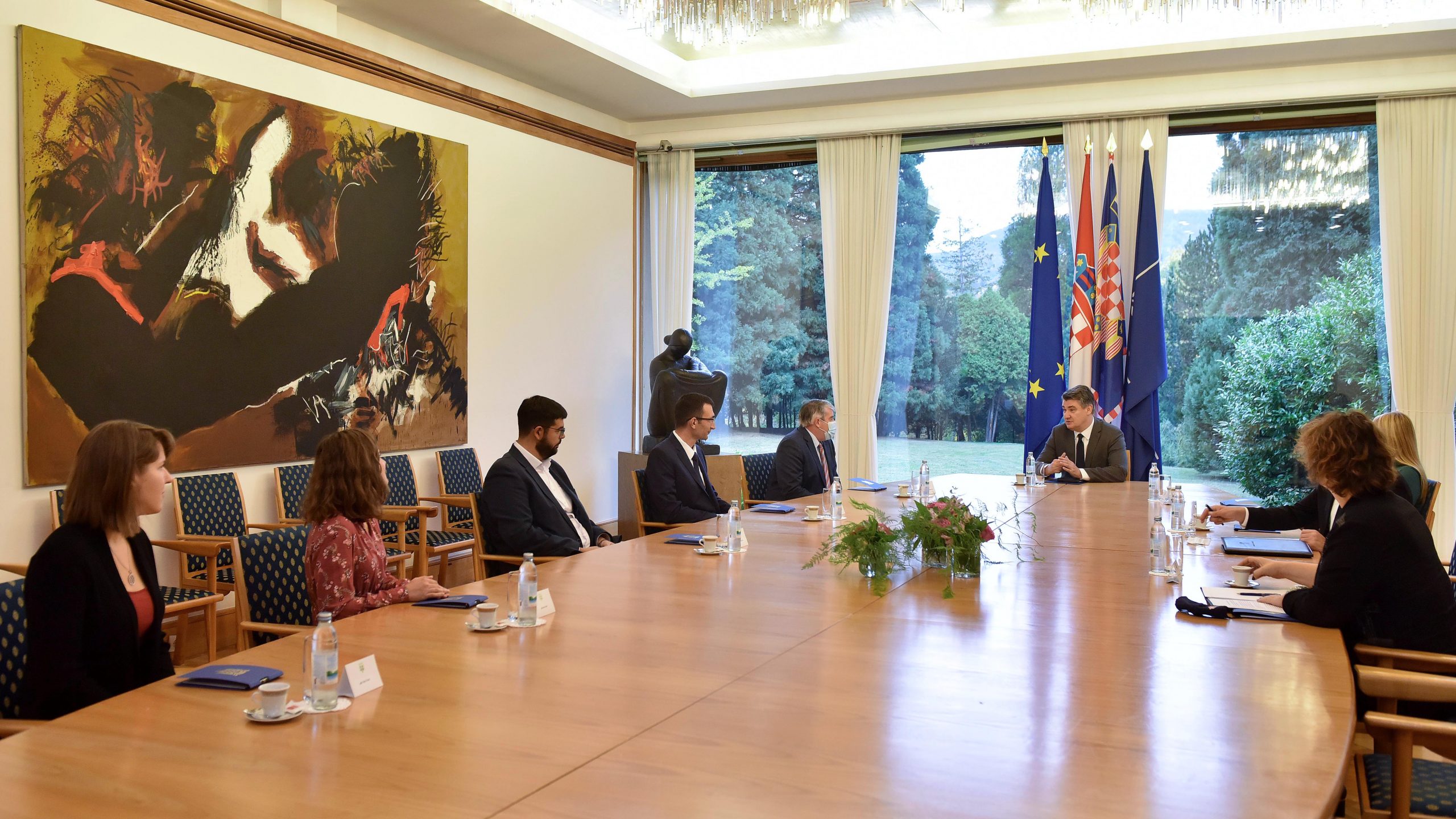 Predsjednik Republike Zoran Milanović primio je izaslanstvo mladih istraživača Instituta Ruđer Bošković. U izaslanstvusu bili dr. sc. Tomislav Domazet – Lošo, voditelj istraživanja bakterijskih biofilmova, dr. sc. Momir Futo, postdoktorand na Institutu Ruđer Bošković, Sara Koska, doktorandicana Institutu Ruđer Bošković, Nina Čorak, doktorandica na Institutu Ruđer Bošković te dr. sc. David Matthew Smith, ravnatelj Instituta Ruđer Bošković.