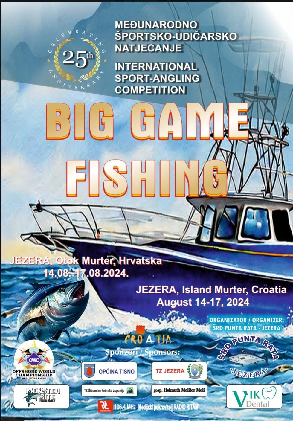 Jubilarno, 25. po redu međunarodno ribolovno natjecanje “Big Game Fishing” (BGF) održava se u Jezerima na otoku Murteru od 14. do 17. kolovoza 2024. godine u organizaciji ŠRD Punta Rata.