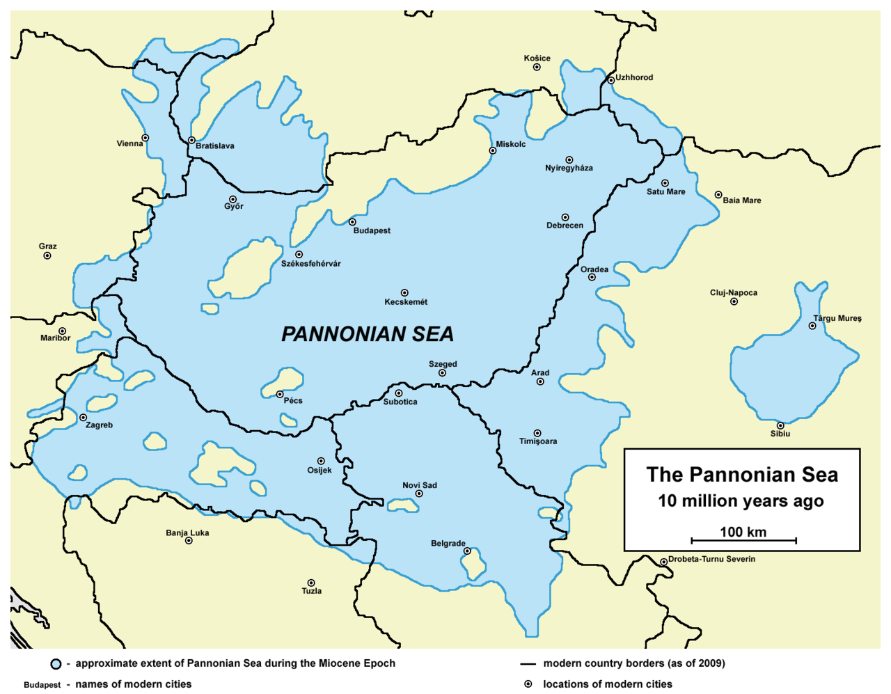 Prije više od 10 milijuna godina, postojala je značajna vodena površina na području današnje Panonske nizine. Riječ je bila o Panonskom moru koje je kasnije postalo Panonsko jezero. Prekrivalo je veći dio današnje Mađarske, dijelove Hrvatske, Srbije, Bosne i Hercegovine, Slovačke, Češke, Austrije, Rumunjske – čak i dijelove Ukrajine.