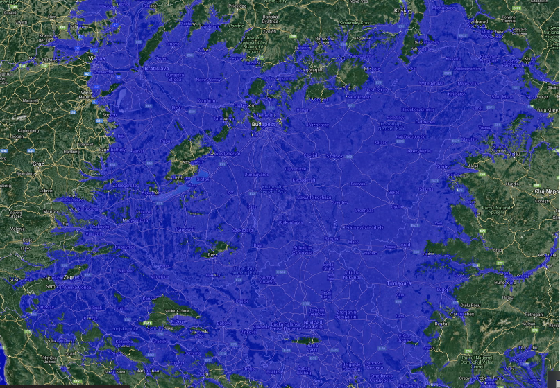 Na Wikipediji se može pronaći nekoliko različitih karata Panonskog mora. One pružaju odličan uvid i općenit pregled površine koju je pokrivalo Panonsko more. Međutim, htio sam pokušati i napraviti nešto precizniju rekonstrukciju mogućeg dosega Panonskog mora. Počeo sam s kartama s Wikipedije i potom sam granice Panonskog mora ucrtao na zemljovid s granicama današnjih država i njihovih geografskih značajki. Započeo sam s ovom kartom.