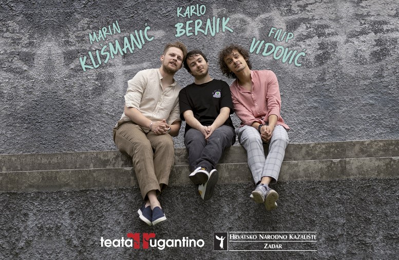 Na Sceni Ribnjak u Zagrebu, u subote 3. i 17. veljače 2024. Teatar Rugantino i HNK Zadar najavljuju predstavu “Prijatelji” autora Vanje Jovanovića i Filipa Jurjevića u kojoj glume Filip Vidović, Karlo Bernik i Marin Klišmanić.