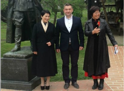 Za uspomenu i uz velik se osmijeh fotografirala uz spomenik Josipa Broza Tita, koji je za života gajio prisne odnose s kineskim političkim vrhom, što je za njega bilo od iznimnog značaja u raznim aspektima političkog, gospodarskog i društvenog života.