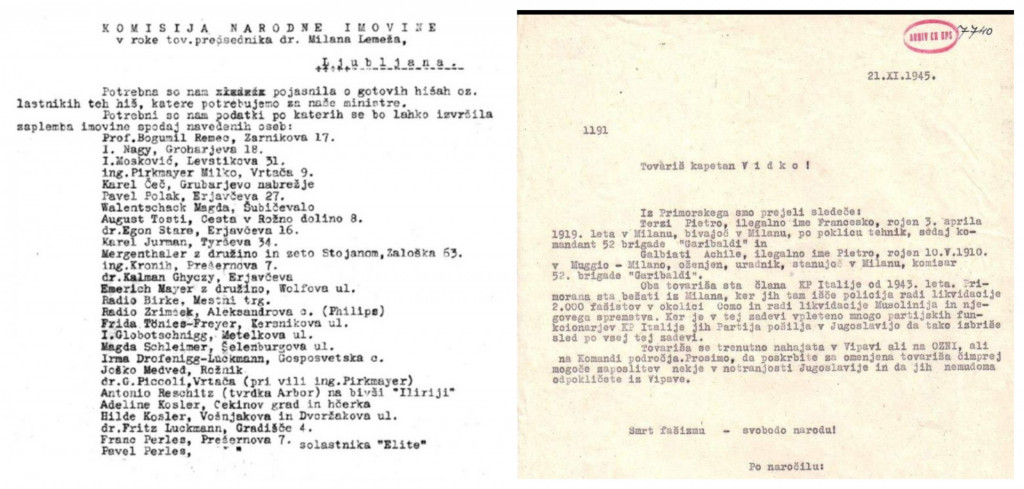 Da je komunistična partija morala poskrbeti za svoje prišleke iz tujine priča dokument, kjer piše, da morajo komunistične oblasti na Primorskem urediti vse dokumente za bivanje in delo dveh italijanskih komunistov, ki so ju italijanske oblasti iskale zaradi uboja tisočev fašistov.