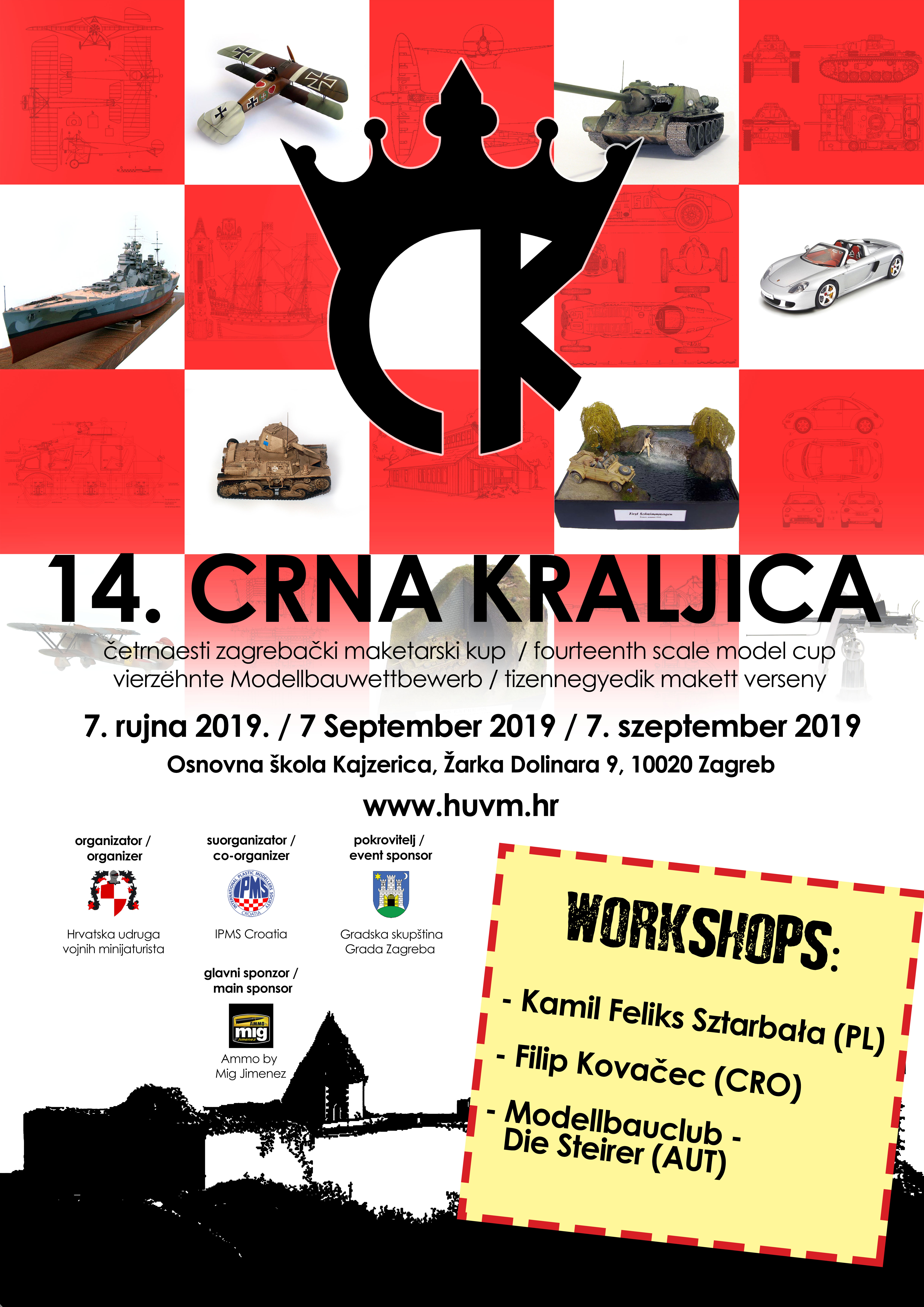 Hrvatska udruga vojnih minijaturista organizira tradicionalni XIV. Zagrebački maketarski kup CRNA KRALJICA 2019, koji će se održati 7. rujna 2019. godine, u sklopu OŠ Kajzerica u Zagrebu. Cjelokupna manifestacija odvija se pod visokim pokroviteljstvom Gradske skupštine Grada Zagreba.
