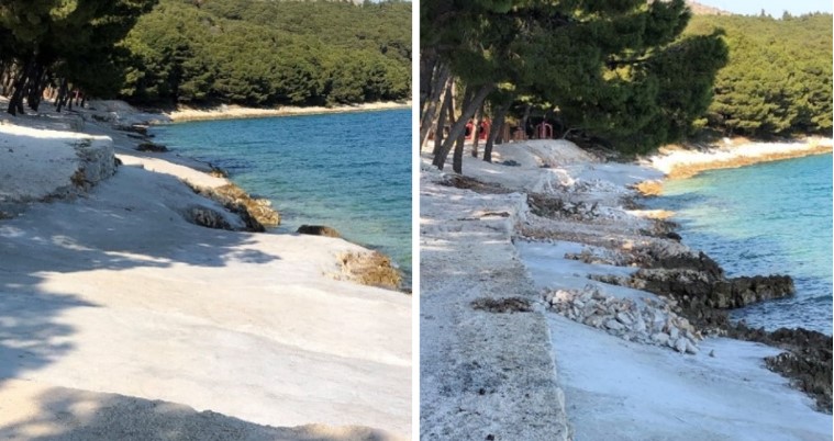 Bez prethodno pribavljene suglasnosti te protivno ugovoru o koncesiji, koncesionar je betonirao prirodne kamene škrape u Seget Vranjici u ukupnoj površini od 416 m2. Nakon što smo prijavu proslijedili Ministarstvu mora, prometa i infrastrukture, ovlašteni inspektor izašao je na teren te naložio počinitelju povrat pomorskog dobra u prvotno stanje sukladno njegovoj prirodi i namjeri. Također, unutar rješenja Ministarstva precizirane su metode uklanjanja koje će rezultirati s najmanjom štetom za okoliš.