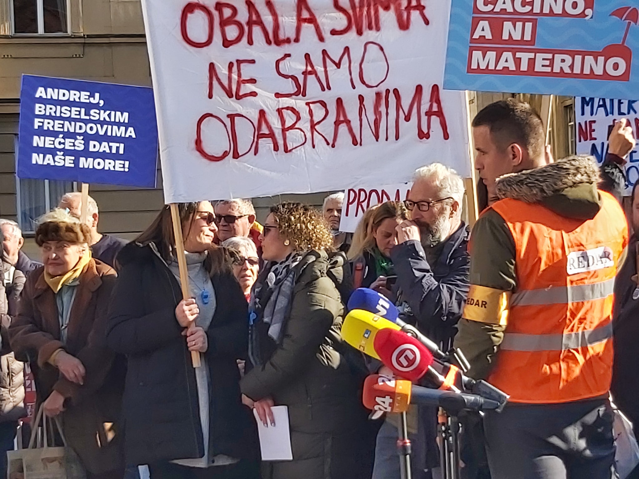 Govornika koji su došli iz svih krajeva naše obale bilo je puno, a zajednička nit svima je jasno neslaganje s prijedlogom zakona koji s jedne strane omogućuje da naša obala i more dođu u privatne ruke, da postanu vlasništvo banaka, a da županijske lučke uprave postanu gospodari iznad zakona i Ustava, da samostalno odlučuju gdje i kakvu luku ili druge objekte će graditi, bez prostornih planova i građevinskih dozvola.