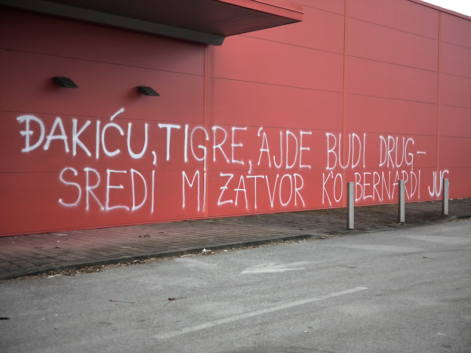 Kako prenose lokalni mediji, na zgradi nekadašnje prodavaonice Bila u Virovitici u četvrtak, 23. siječnja 2025. je osvanula poruka sljedećeg sadržaja: “Đakiću, tigre, ‘ajde budi drug i sredi mi zatvor k’o Bernardi Jug”. Grafit je ispisala slobodna novinarka i aktivistica Iva Anzulović kojoj ovo nije prva akcija ovakve vrste. Pamti se kako je 2018. godine bacala fekalije na zgradu Vlade RH.