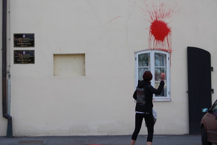 Na svjetski Dan slobode medija koji je obilježen 3. svibnja, slobodna novinarka Iva Anzulović posegnula je za umjetničko-novinarskim perfomansom koji još nije viđen na našim prostorima. Balonima koje je prethodno kod kuće ispunila jarkom crvenom bojom, gađala je pročelje zgrade Gradske uprave grada Virovitice na 17 mjesta duž cijelog zida koji gleda Dvorac Pejačević. Cilj “oslikavanja” je kako navodi novinarka Anzulović, “trajno usaditi u sjećanje ljudi krvavu Gradsku upravu Virovitice”. Povod ovoj akciji je dvostruki – obilježavanje Dana slobode medija i točno 11 mjeseci otkako je nekadašnji zaposlenik gradske Uprave, Siniša Palm, pronađen mrtav uz obalu rijeke Drave.