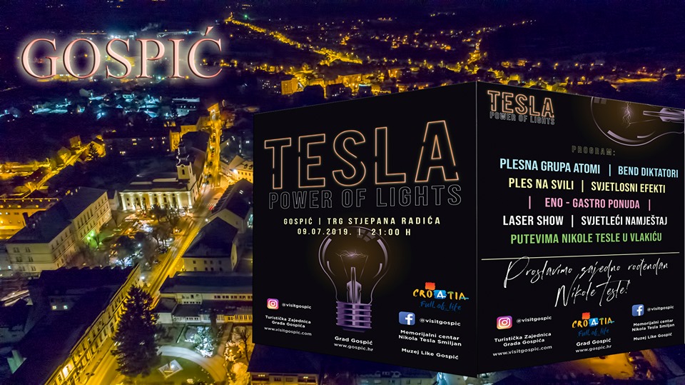 Uoči rođendana Nikole Tesle, rođenog 10. srpnja 1856. u Smiljanu kraj Gospića započiti će manifestacija pod nazivom “Tesla Power of Lights”, kojom će Gospić ove godine obilježiti 163. obljetnicu rođenja hrvatskog i svjetskog inovatora. Tesla je kao slavni izumitelj, elektrotehničar i fizičar ostavio veliki trag u cijelom svijetu, od čega će nešto moći vidjeti i posjetitelji u sklopu svjetlosnog spektakla te vozeći se posebnim turističkim vlakom “Putevima Nikole Tesle”, koji će besplatno voziti i tijekom dana po svim lokacijama u Gospiću koje su vezane za život i rad svjetskog genija.
