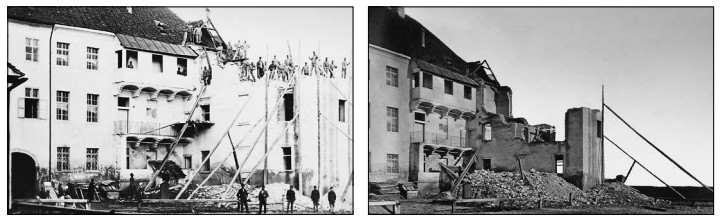Vojne tehničke čete obavile su golem posao, isticale su se hrabrošću u uklanjanju oštećenih zgrada, ali ni one nisu bile spremne rušiti objekte „koji su suviše vratolomni i oko kojih bi se morali više tjedana zadržati”, tako da je na rušenju iznimno oštećenoga tornja franjevačke crkve angažiran bečki poduzetnik Oberhauser, dok je uklanjanje vrha tornja katedrale, kao i izvedbu skela unutar ove građevine, izveo Herman Bollé sa svojim radnicima.