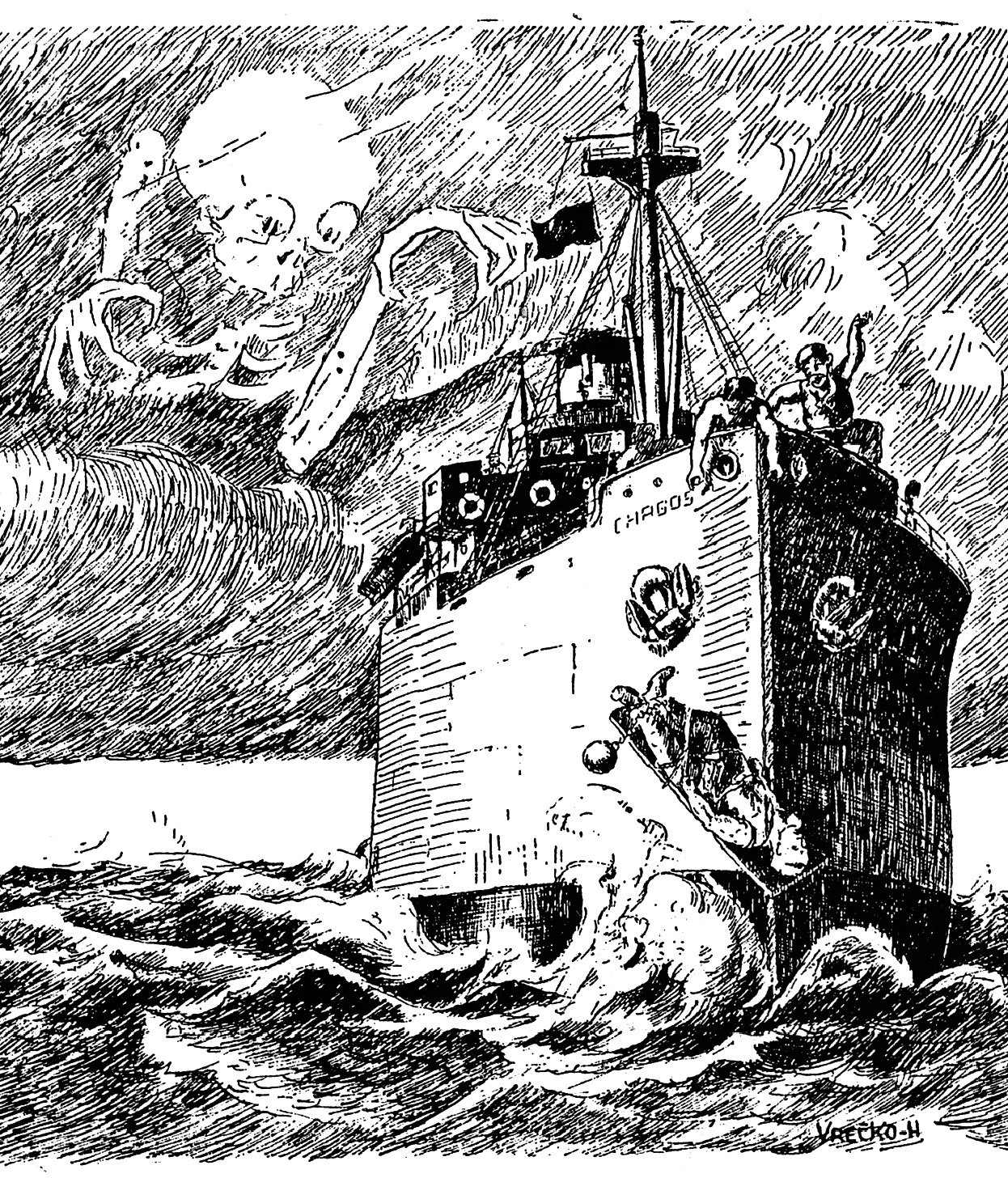 Dvije ilustracije, svaka na svoj način dojmljiva i ekspresivna, koje su pratile Fuisovu pripovijetku „Lutalica Chagos – Brod smrti“ nacrtao je M. Vrečko, o kojemu nam nisu dostupne informacije, osim što smo na njegov potpis naišli i na još nekim drugim ilustracijama iz toga vremena u „Kulisi“.