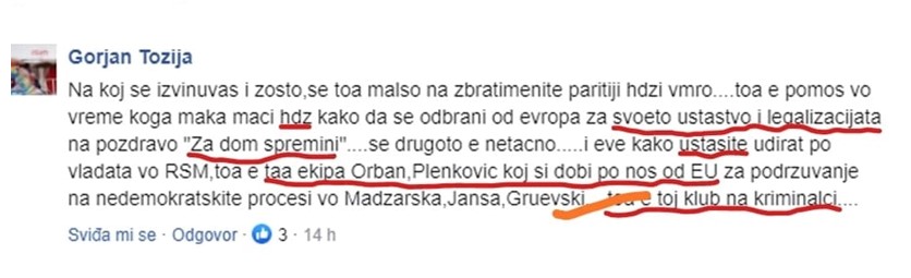 Gorjanu Toziji ovo nije prvi napad na Hrvatsku u kojem se usudio jednu državu koja je teškom mukom i krvlju svojih ratnika izborila slobodu protiv srbijanskog fašizma nazivati fašističkom, a sveti pozdrav pod kojim je obranjena difamirati. O ovom skandalu je već nebrojeno objava u makedonskomt isku. Zašto se u Hrvatskoj šuti?
