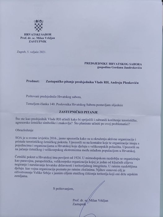 Te iste, 2016. godine, SOA objavljuje izvješće u kojem jasno utvrđuje pojačanu aktivnost četničkih simbola i ikonografije te četničkih organizacija s obilježjima terorizma na prostoru Republike Hrvatske, a i šire. Naime, kako navodi SOA, posljedice ratnih trauma i neriješenih međunacionalnih odnosa mogu biti plodno tlo za jačanje ekstremizma. Slučajno ili ne, pet godina kasnije, preciznije 5. veljače 2021. saborski zastupnik dr. Milan Vrkljan premijeru Plenkoviću, postavlja pisanim putem zastupničko pitanje na istu temu. Dokaz za postavljeno pitanje narodnog zastupnika premijeru RH mogao bi se pronaći u nedavnoj izjavi bivšeg djelatnik sigurnosnih službi Željka Kekića u kojoj govori o onome što Hrvati samo šaputaju, a to je koliko je srpska BIA premrežila Hrvatsku svojim agentima od politike i službi preko medija.