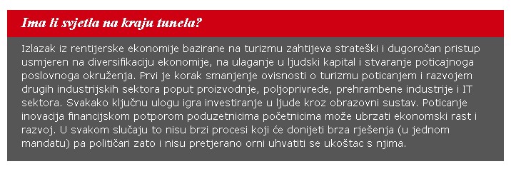 Iako rentijerska ekonomija temeljena na turizmu pruža kratkoročne financijske benefite, na duge staze ne donosi ništa dobroga. Hoće li ovdašnji narod naučiti nešto prije negoli vlastitom glavom udari o zid?