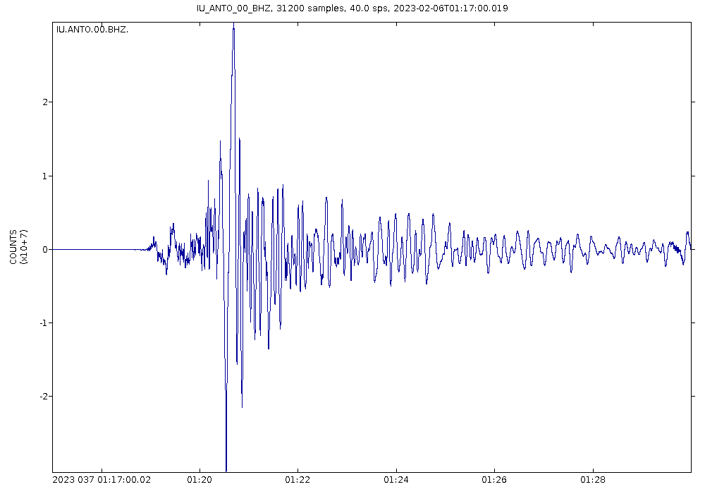Slika 1) Seizmogram najjačeg potresa M7.8
