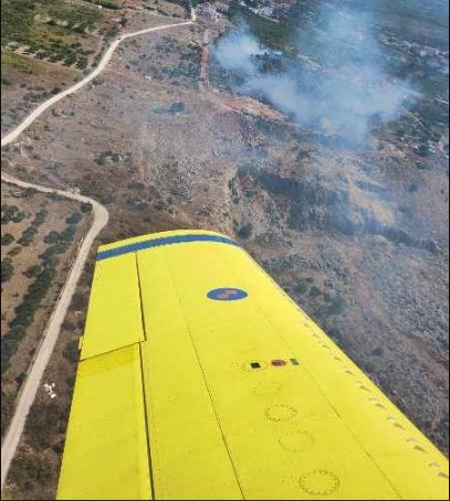 Također je jučer zaprimljena dojava o požaru na otvorenomprostoru u Imotskom, naselje Grubine. Požarom je zahvaćena borova šuma i raslinje napovršini od 1,5 ha. U gašenju požara sudjelovala je JVP Imotski sa sedam vatrogasaca i trivatrogasna vozila te jedan AT 802 koji je bio na ovom području zbog protupožarnog izviđanja sjednim bacanjem vode. Požar je uspješno ugašen.