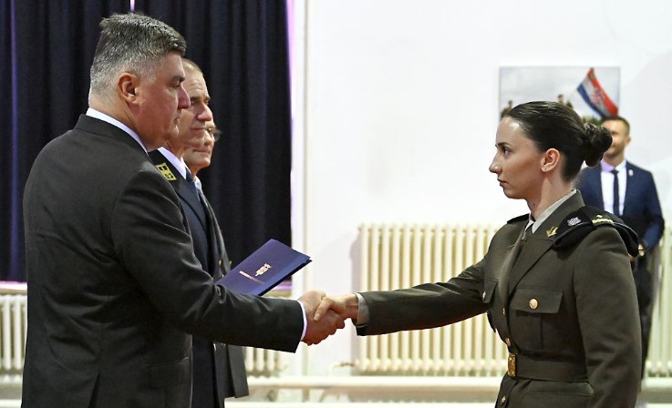 Na temelju svojih ustavnih i zakonskih ovlasti Predsjednik Republike i vrhovni zapovjednik Oružanih snaga Republike Hrvatske donio je Odluku o dodjeli čina poručnika/poručnikakorvete Oružanih snaga Republike Hrvatske za 70 kadetkinja i kadeta (24 kadetkinje i 46 kadeta) koji su uspješno obranili završne radove diplomskih i preddiplomskih sveučilišnih studijskih programa 16. i 17. naraštaja Vojnog pomorstva, Vojnog inženjerstva te Vojnog vođenja i upravljanja. Uz predsjednika Milanovića pri uručenju činova bili su načelnik Glavnog stožera Oružanih snaga Republike Hrvatske admiral Robert Hranj i zamjenik zapovjednika HVU „Dr. Franjo Tuđman“ brigadni general Blaž Beretin.