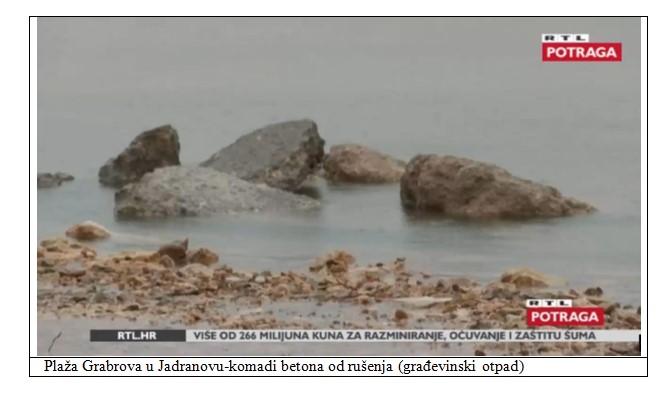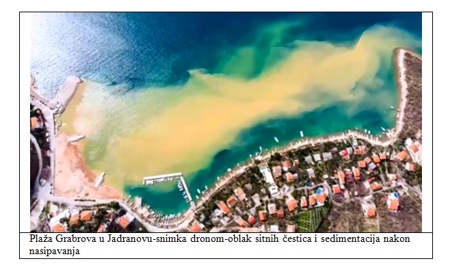 Iako je za četiri od pet plaža Grad Crikvenica napravio Elaborat zaštite okoliša, odnosno proveo je postupak ocjene o potrebi procjene utjecaja zahvata na okoliš (OPUO), to ne garantira da će se postupak nasipavanja projektiranih plaža provesti sukladno pravilima struke i zakonskim normama. Zašto bi netko (Grad Crikvenica) tko je radio nasipavanje plaže Grabrova u Jadranovu preko noći promijenio način izgradnje plaža.