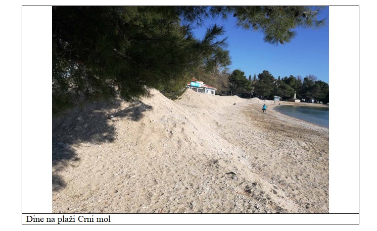 Također, na plaži Crni mol svako proljeće pojavljuju se dine visoke nekoliko metara koje nastaju tako da bager skuplja po plaži pijesak i formira dine. Možda je to zbog toga da jugo ne povuče pijesak u mora, uvjeren sam da u Gradu Crikvenici znaju što rade, kao i uvijek.