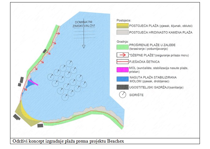 Razlog zašto su dvije plaže u suprotnosti s prostornim planovima leži u činjenici da se na te dvije plaže može raditi dohranjivanje (nema promjene obalne crte) dok nasipavanje (promjena obalne crte) nije predviđeno na tim plažama.