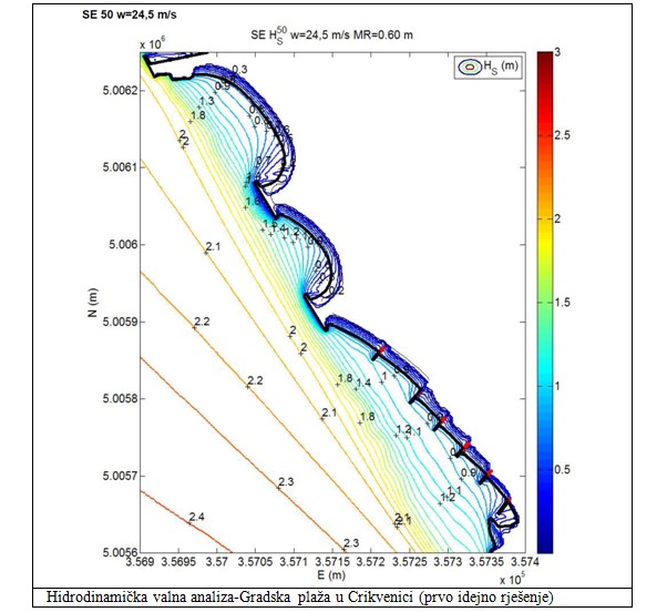 Vrlo bitna stvar za održivu gradnju plaža predstavlja hidrodinamička valna analiza. Jedan od razloga zbog čega je potrebno raditi hidrodinamičku valnu analizu je dobivanje nove optimalne obalne crte sve s ciljem minimiziranja troškova održavanja (dohranjivanja). Kao primjer navodim Gradsku plažu u Crikvenici kod koje se planira raditi nasipavanje koje je u suprotnosti s prostornim planovima, ali je za predmetnu plažu kod izrade prvog idejnog rješenja projektant napravio hidrodinamičku valnu analizu. „Stručnjaci“ Grada Crikvenice tražili su od projektanta pomicanje obalne crte prema moru kako bi dobili dodatne plažne površine, ali projektant je odbio korigirati obalnu crtu prema zahtjevima Grada Crikvenice, ne želeći ići protiv rezultata numeričke analize. Grad Crikvenica tada kreće u izradu drugog idejnog rješenja kojim dodatno povećava plažne površine s dodatnim pomicanjem obalne crte. Pravilo je jednostavno kada neće jedan projektant hoće drugi projektant. Za drugo idejno rješenje nije napravljena hidrodinamička valna analiza.
