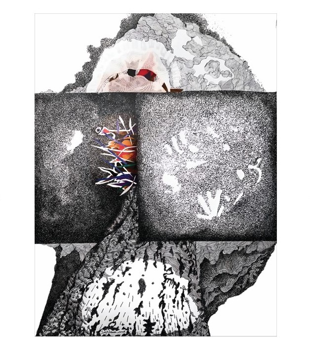 Njezine značajke čitaju se i u ovom zadnjem ciklusu crteža naslovljenom Prožimanje, kojega je osnažila silovitijim prodorima imaginativnog i smionim iskoracima. Samim naslovom Prožimanje Snježana Kodarić-Ivanković eksplicitno je izrazila i temeljnu sastavnicu svojega crtačkog postupka kojega je dosljedno provodila i stvaralački produbila u ovoj novoj seriji crteža ne samo uzvisivanjem crtačkog umijeća i slobodnijim unosom boje, preciznim komponiranjem geometrij skih elemenata, nego širenjem vidnog polja u velikim ekranima crteža emanirajući golemom vizualnom energijom prema prostoru beskraja u kojemu se zrcale začudni krajolici podsvjesnog i iracionalnog, duhovnog i metafizičkog.