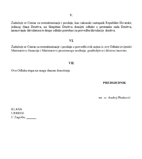 Prema navodima iz Obrazloženja, nakana je Vlasnika otvoriti perspektivu za „uspješno upravljanje nekretninama“, a tvrdi se da je to „u neospornom interesu RH“.