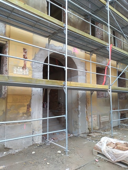 - pojačanje preostalih zidovi od pune opeke torketiranjem i armiranim mrežama u sloju betona (što predstavlja nepotrebno dodatno oštećivanje i devastiranje ziđa od opeke)