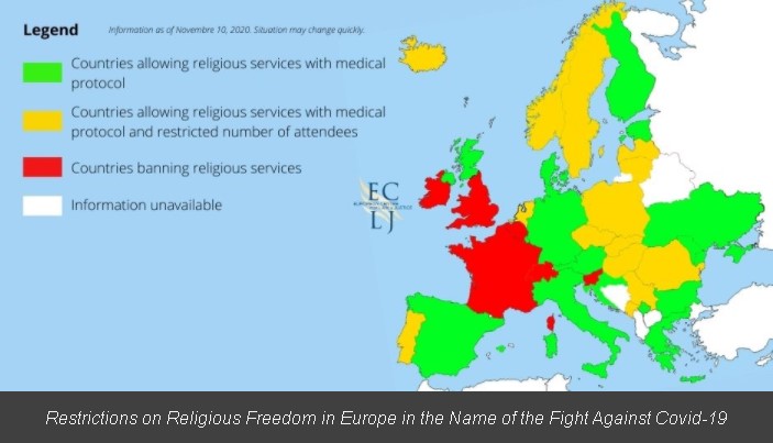 The ECLJ has been monitoring closely recent legislative changes in Europe regarding this fundamental freedom that includes the freedom of community worshiping. It appears from the study of more than 40 European countries that, in the vast majority of them, religious services are authorized, even though they are subjected to compliance with health rules whose rigor varies greatly.