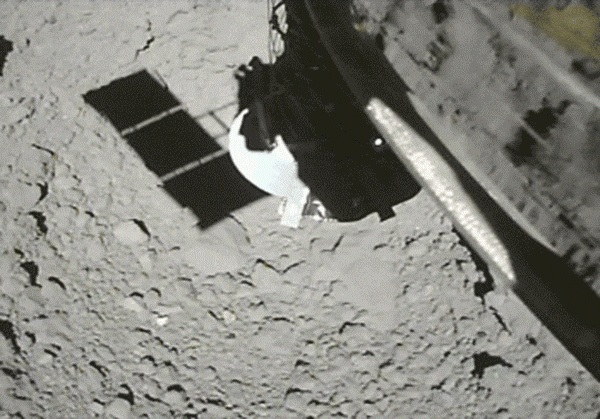 Slika 5 – Animirani gif uzimanja uzoraka sonde Hayabusa 2 https://www.spaceflightinsider.com/video/jaxa-releases-video-of-dramatic-hayabusa-2-asteroid-touchdown/