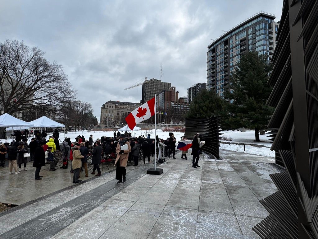 Unatoč snijegu i hladnoći, svečanoj ceremoniji je 12. prosinca 2024. prisustvovalo više od stotinu uglednih ličnosti, među kojima su bili vladini dužnosnici, predstavnici diplomatskog zbora akreditirani u Kanadi s raznih meridijana te zastupnici lokalnih vlasti, predvođeni glavnim aktivistima iz organizacije Tribute to Liberty kao i dizajnerskim timom spomeničkog kompleksa iz Paul Raff Studia te predstavnicima pogođenih zajednica.