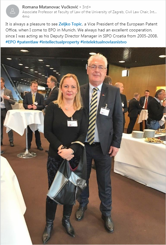 Inače, kako je vidljivo iz službenih internetskih objava Državnog ureda za industrijsko vlasništvo Republike Makedonije sa sjedištem u Skopju kao i iz Instituta za intelektualno vlasništvo Bosne i Hercegovine, gospodin Željko Topić je koncem 2018. godine bio gost u te dvije bivše YU republike.