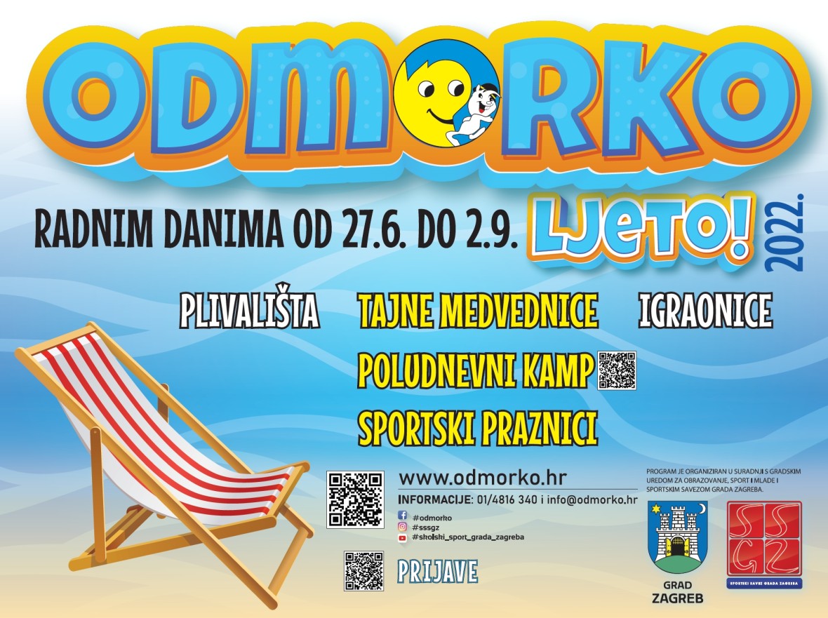 Školski sportski savez Grada Zagreba pripremio je kao i prijašnjih godina još jedan program besplatnih sportskih aktivnosti za učenike osnovnih i srednjih škola Grada Zagreba tijekom ljetnog odmora 2022. godine. Ljetni program će se provoditi radnim danima od 27. lipnja do 2. rujna 2022. godine.
