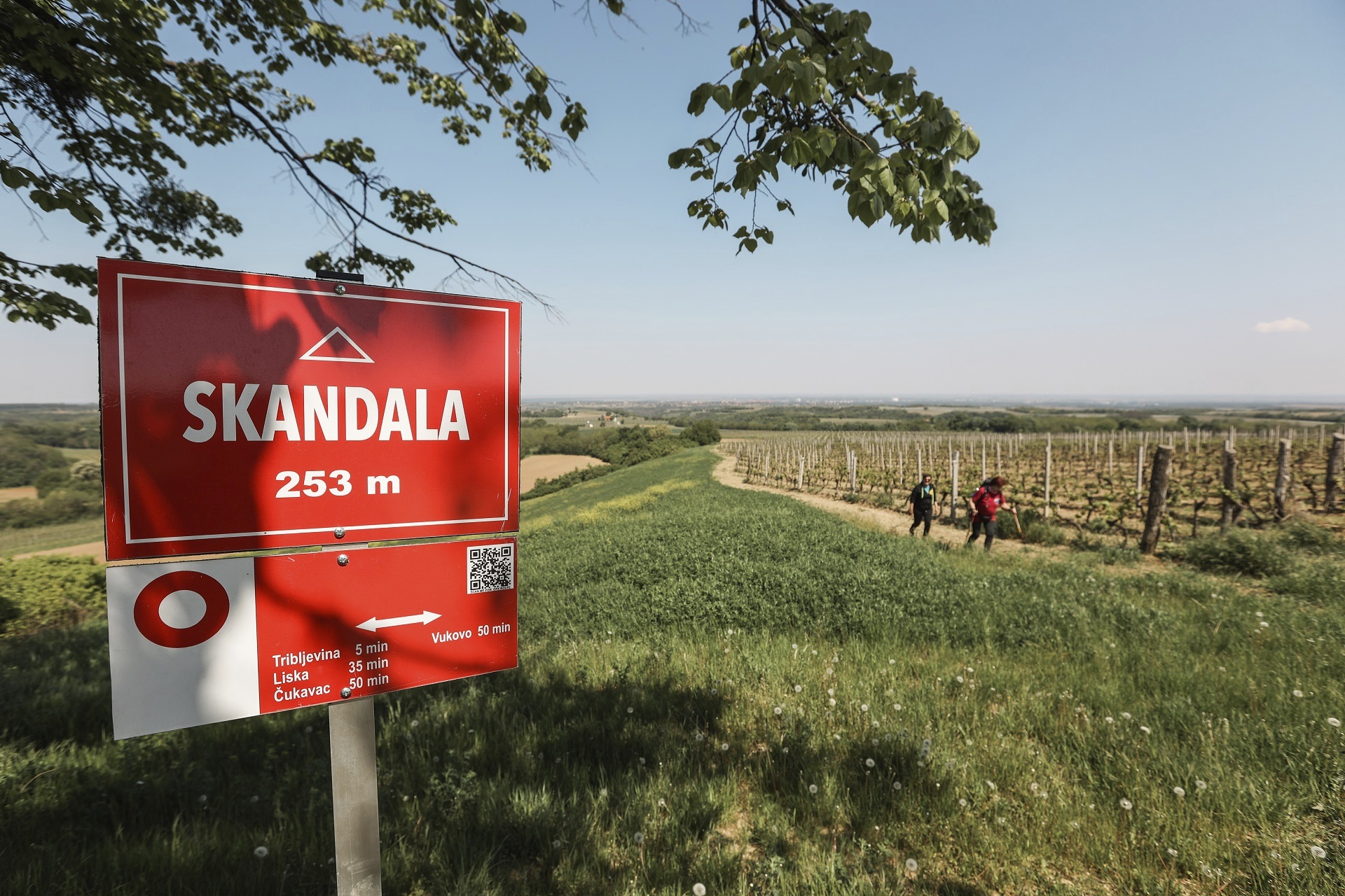 Naime, Skandala s 253 metra nadmorske visine nije najviša ali je najistočnija kontrolna točka Hrvatske planinarske obilaznice. Smještena je u srcu Srijemskog vinogorja iznad Iloka i nudi savršen spoj rekreacije i hedonizma. Dvije staze po njoj nose ime, dulja ima 14 kilometara, kraća devet, obje su kružne, kreću od vidikovca Vukovo, vode vinogradima do najvišeg vrha Liske na 297 metara nadmorske visine i preko Skandale, vraćaju se na početnu točku.