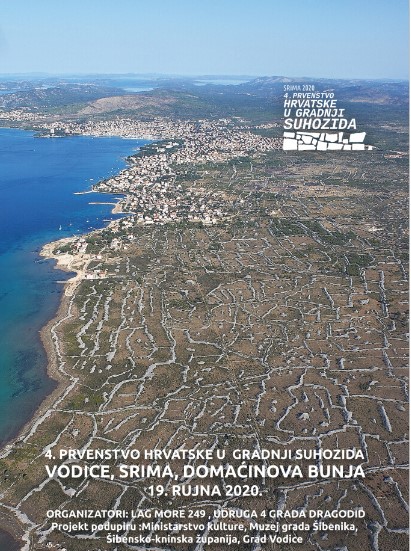 4. PrvenstvoHrvatske u gradnji suhozida, u organizaciji LAG-a More 249 i udruge 4 Grada Dragodid, održat će se u subotu 19. rujna 2020. u Vodicama, točnije kod Domaćinove bunje na području poluotoka Srime gdje danas na tridesetak četvornih kilometara ima tisuću kilometara suhozida.