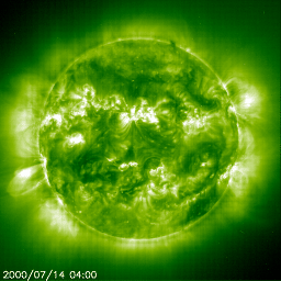 Dok se Sunčeva plazma bućka i struji uokolo, njezino se magnetsko polje plete i kovrča. To stvara goleme magnetske silnice i čvorove koji sadrže ogromne količine energije. Kad se magnetski čvorovi raspadnu (eksplodiraju prema van) Sunce može izbaciti plazmu u svemir, a to zovemo sunčevom olujom. Takve Sunčeve oluje dolaze u mnogim vrstama, poput Sunčevih baklji koje predstavljaju val visokoenergetskog zračenja koji se brzinom svjetlosti širi Sunčevim sustavom. Sunčeva baklja odnosi protone u solarnom vjetru, i ubrzava ih velikom brzinom u solarnu protonsku oluju.